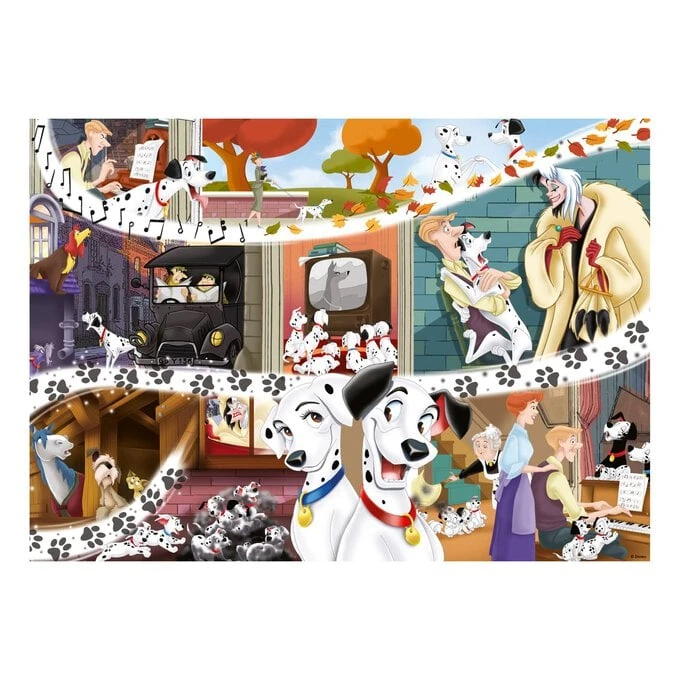 This 1,000-piece puzzle features some of the most beloved scenes from the animated Disney classic, 101 Dalmatians. All your favourite characters make an appearance in this action-packed puzzle, including Pongo, Perdita, the adorable pups, and of course the formidable villain Cruella de Vil.