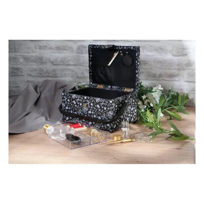 The Hemline Gold Black and White Sewing Box is a great way to store your threads, needles and other accessories. Keep your sewing essentials in order effortlessly!