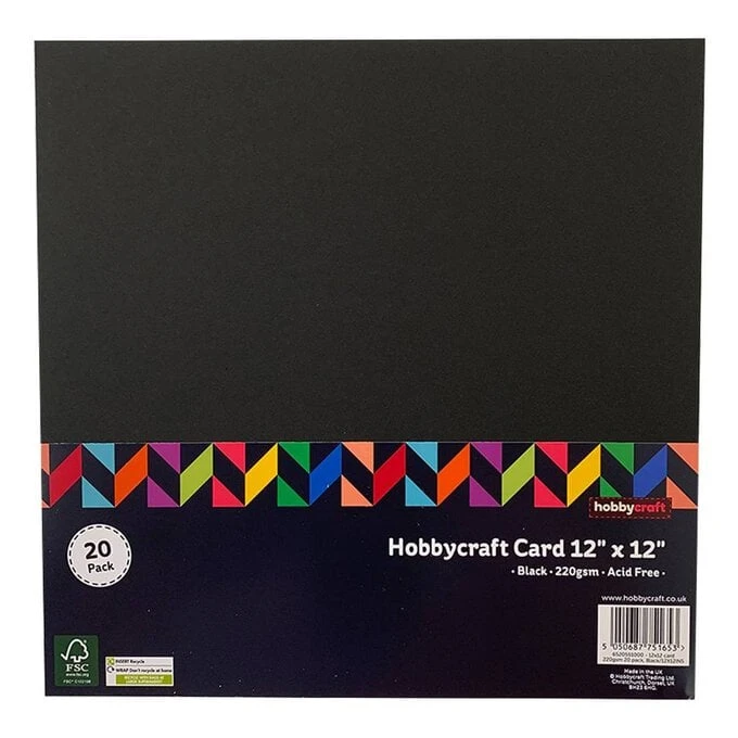 Add glitter, pens, paints, ribbons, stickers, stamps and much more to embellish and enhance your crafting ideas with this simple card as your canvas. Each 12 x 12 inches sheet is 220gsm and there are 20 sheets included in the pack.