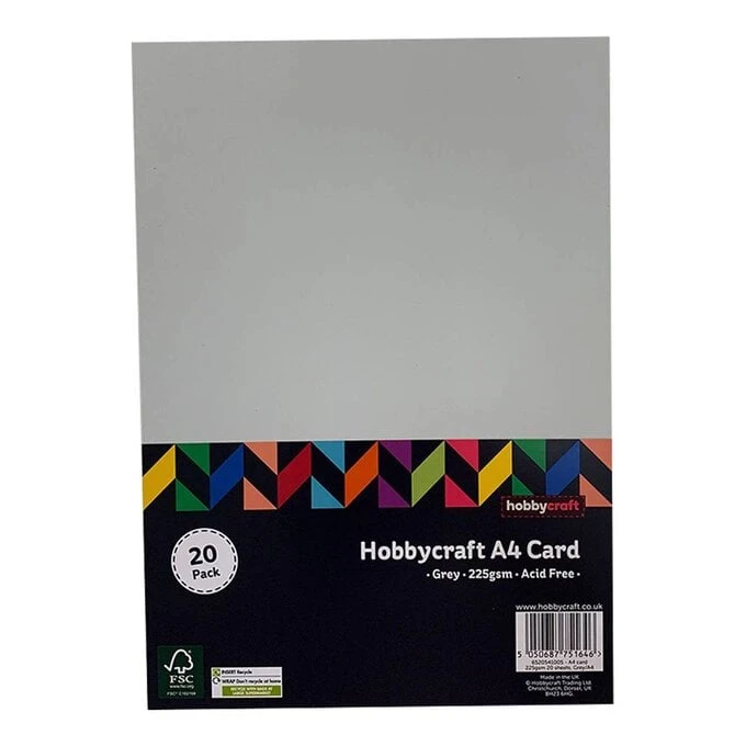 Add glitter, pens, paints, ribbons, stickers, stamps and much more to embellish and enhance your crafting ideas with this simple card as your canvas. Each A4 sheet is 225gsm and there are 20 sheets included in the pack.