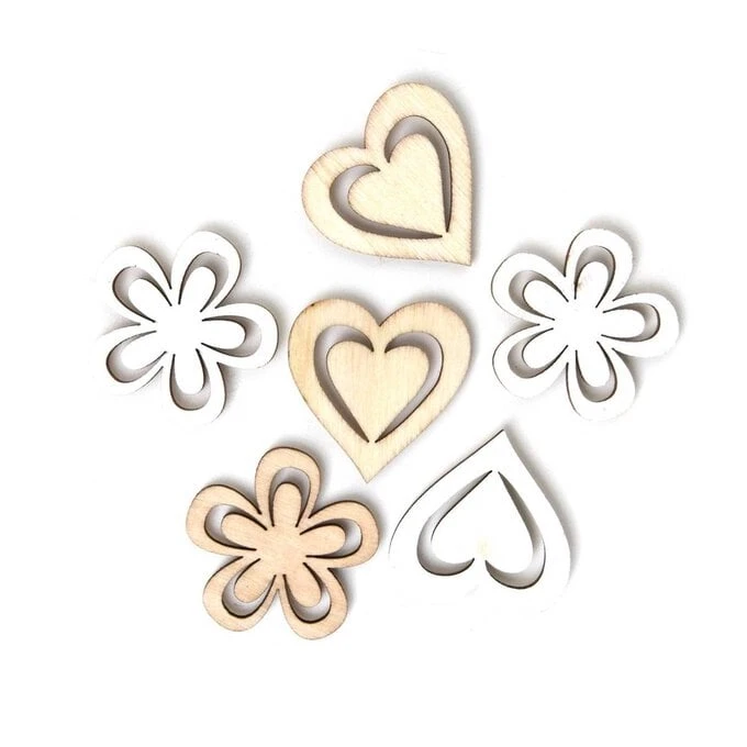 These Heart and Flower Wooden Toppers are a great way to embellish handmade cards, scrapbook pages and more! Decorate your papercraft designs with 3D wooden embellishments that are certain to stand out.
