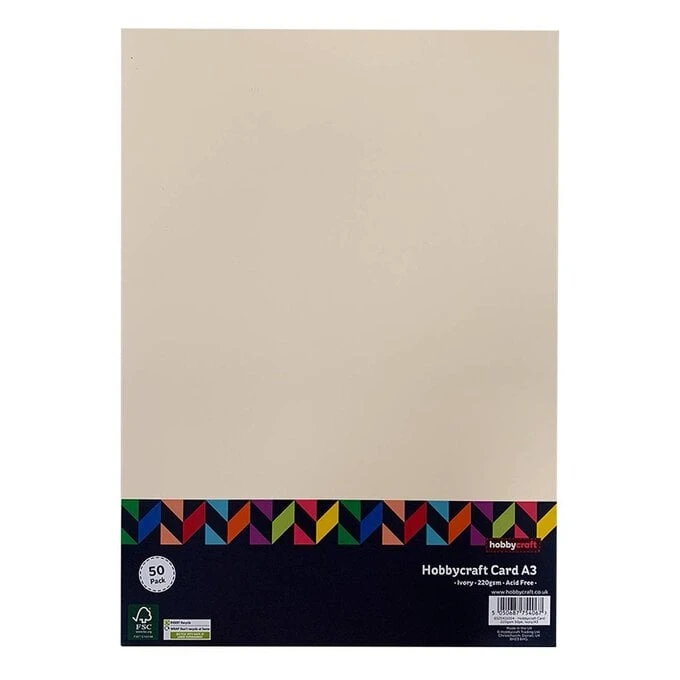 Add glitter, pens, paints, ribbons, stickers, stamps and much more to embellish and enhance your crafting ideas with this simple card as your canvas. Each A3 sheet is 220gsm and there are 50 sheets included in the pack.