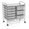 The metal trolley measures 43 x 35 x 78cm and has rolling wheels, allowing you easy movement โ ideal for both personal and professional use. You’ll be able to ensure that the handy trolley is close to hand wherever you’re working. It will use minimal space while offering a great storage solution for everything from stationery to makeup.