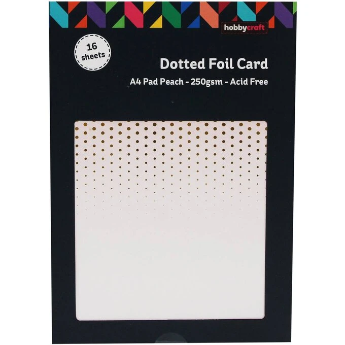 Create incredible effects with the stunning Peach Dotted Foil Card. With a shimmering finish, this patterned foil card is perfect for decorating cards, gift tags, scrapbook pages and other arts and crafts.