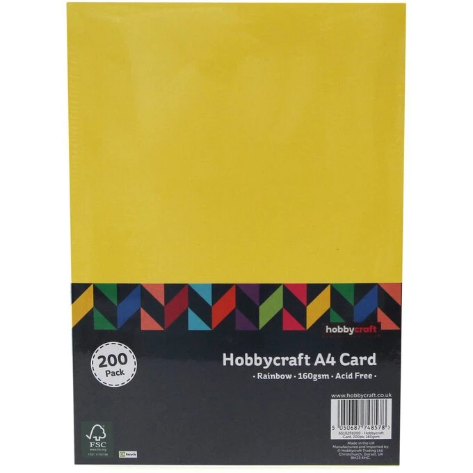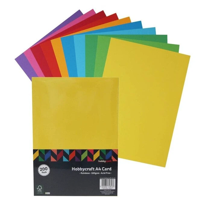Add glitter, pens, paints, ribbons, stickers, stamps and much more to embellish and enhance your crafting ideas with this simple card as your canvas. Each A4 sheet is 160gsm and there are 200 sheets included in the pack.