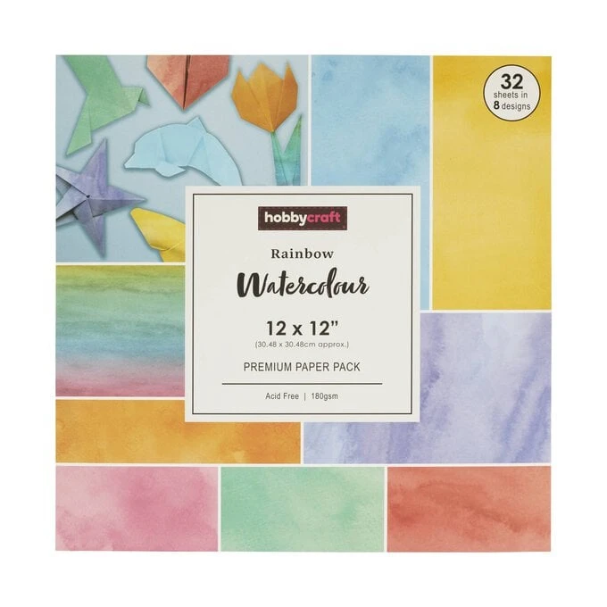 Rainbow Watercolour 12 x 12 Inches Paper Pack 32 Sheets
