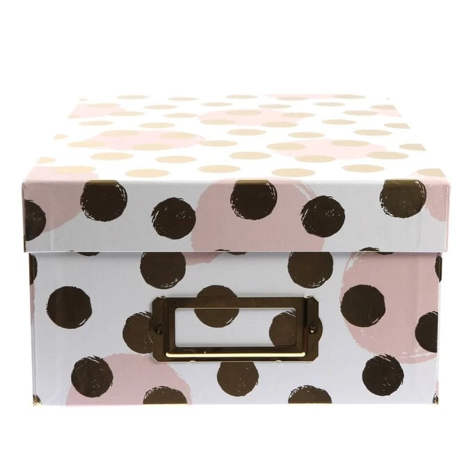 Store photos in style with this Rose and Gold Polka Dot Photo Box!