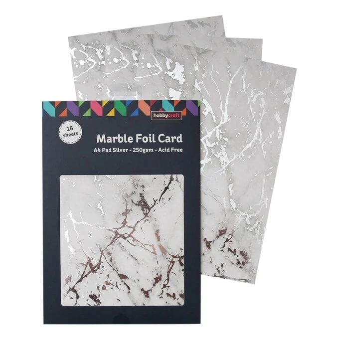 Create incredible effects with the stunning Silver Marble Foil Card. With a shimmering finish, the marble card is perfect for decorating cards, gift tags, scrapbook pages and other arts and crafts.