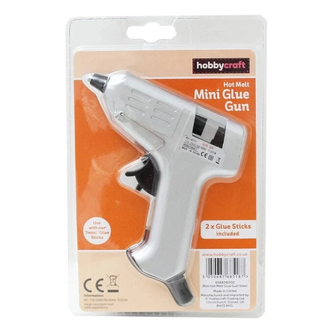 A crafters’ essential, this Silver Mini Hot Melt Glue Gun will be the perfect tool for just about any project! From scrapbooking and card-making to home decoration and handmade accessories, it helps you bond all kinds of materials.