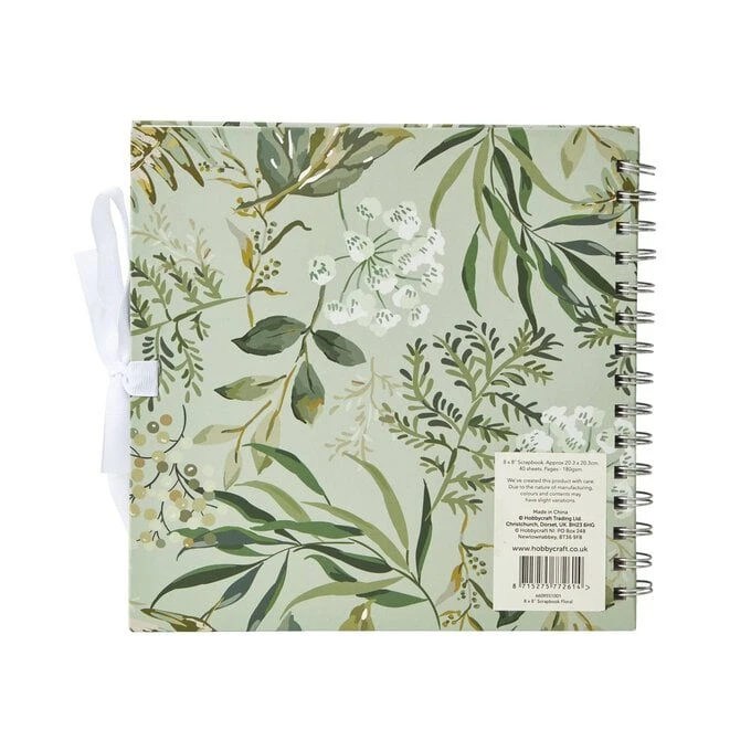 Spiral Bound Green Floral Scrapbook 8 x 8 Inches