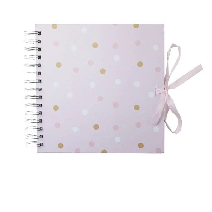 Keep your memories beautifully stored forever in this stunning Spiral Bound Pink Dot Scrapbook. This chic scrapbook gives you a stylish design on the cover, with an abundance of pages to fill inside.