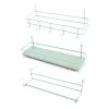 - Includes one base shelf, one dowel frame and one upper rack containing five storage hooks