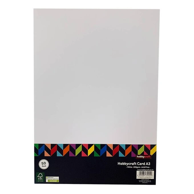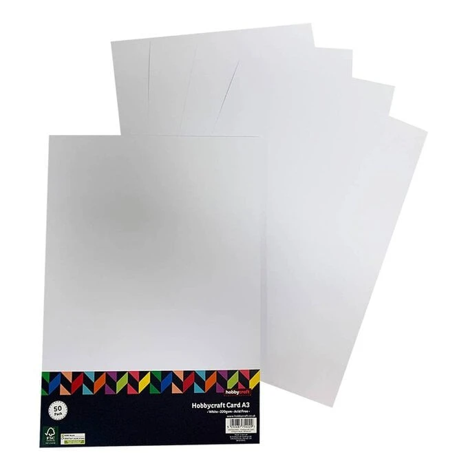 Add glitter, pens, paints, ribbons, stickers, stamps and much more to embellish and enhance your crafting ideas with this simple card as your canvas. Each A3 sheet is 220gsm and there are 50 sheets included in the pack.