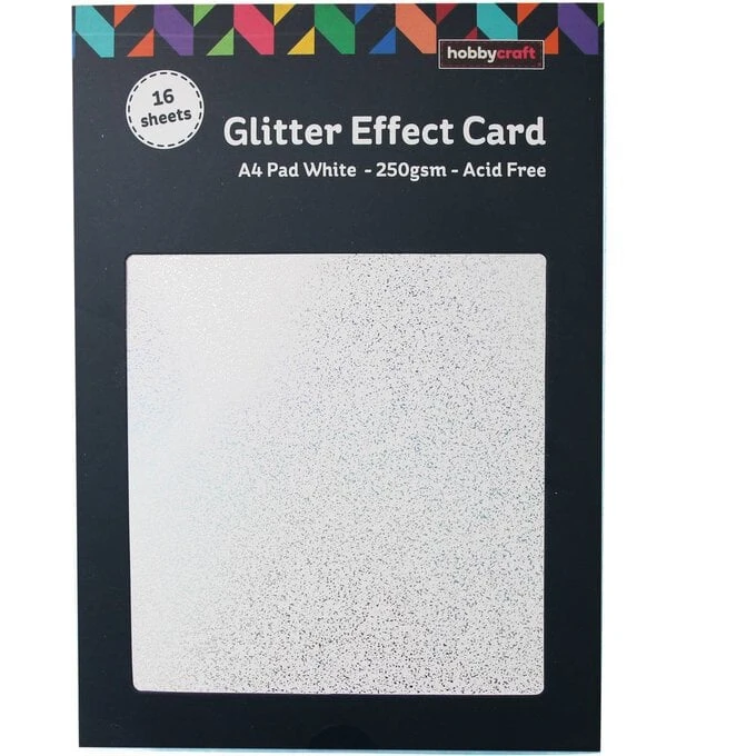 Bring stunning shimmer to every papercraft design using this White Glitter Effect Card! The sparkling finish is perfect for embellishing cards, gift tags, scrapbook pages and other arts and crafts.