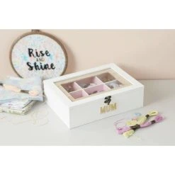 There six sections to the box, with a see-through lid that you can use to peek through to your items, or fill with a photograph cover. The light wood design of the box makes it easy to personalise even further. Use paint or varnish to create a custom look for your box, whether you want to go for vibrant bright colours and antique-style dark wood finishes.