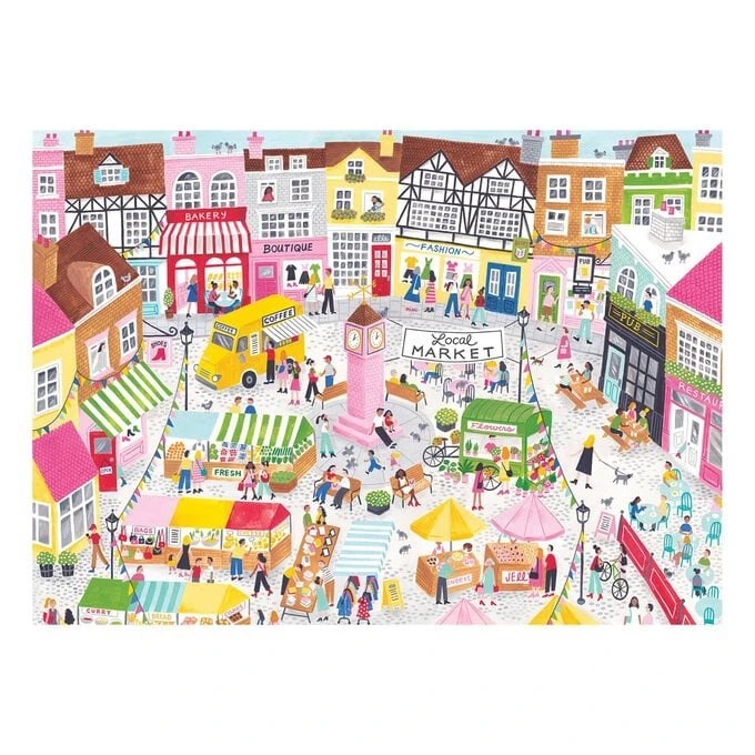 This Falcon Shop Local Jigsaw Puzzle shines a light on the vibrant communities and small business right on your doorstep! Illustrated by Jacqui Lee, the picture shows a bustling local market in full swing.
