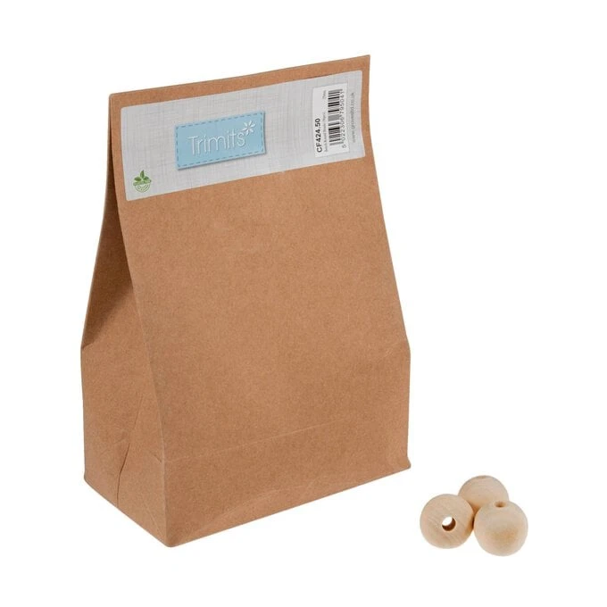 Trimits Round Wooden Craft Beads 25mm 50 Pack